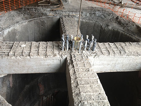 Herramientas para la construcción de caissons facilitan la labor de excavación de suelos difíciles conformados por conglomerados y cantos rodados de gran tamaño.